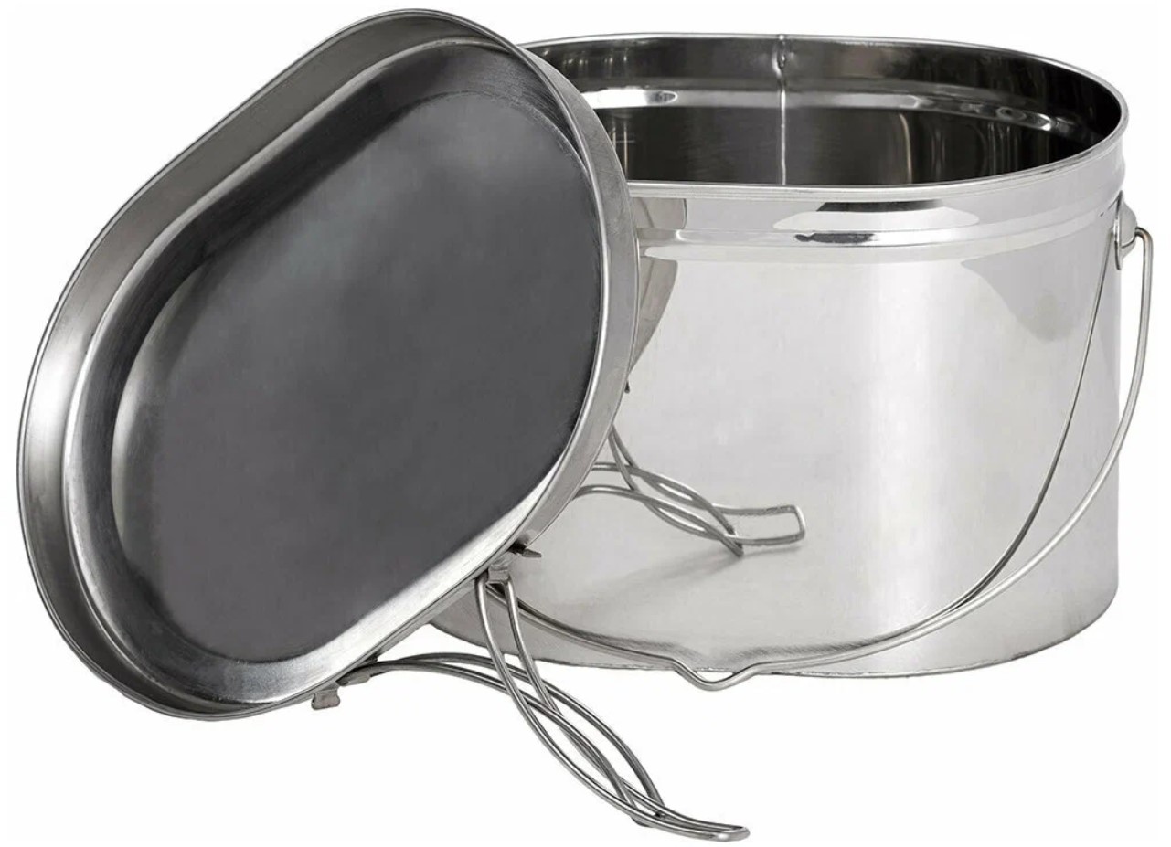 Дополнительно крышки котелков снабжены складывающимися ручками, что позволяет их использовать в качестве сковороды.
