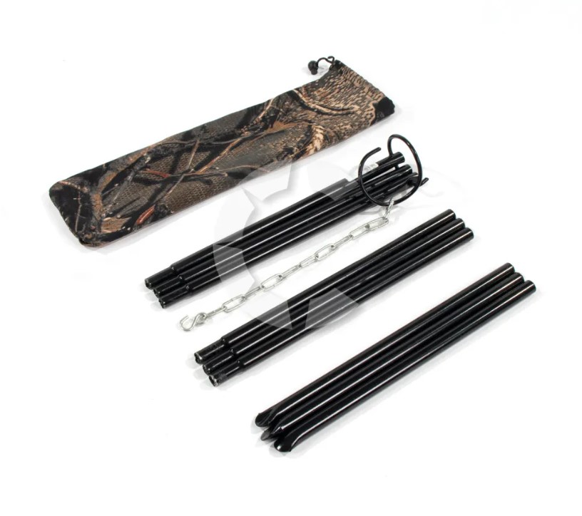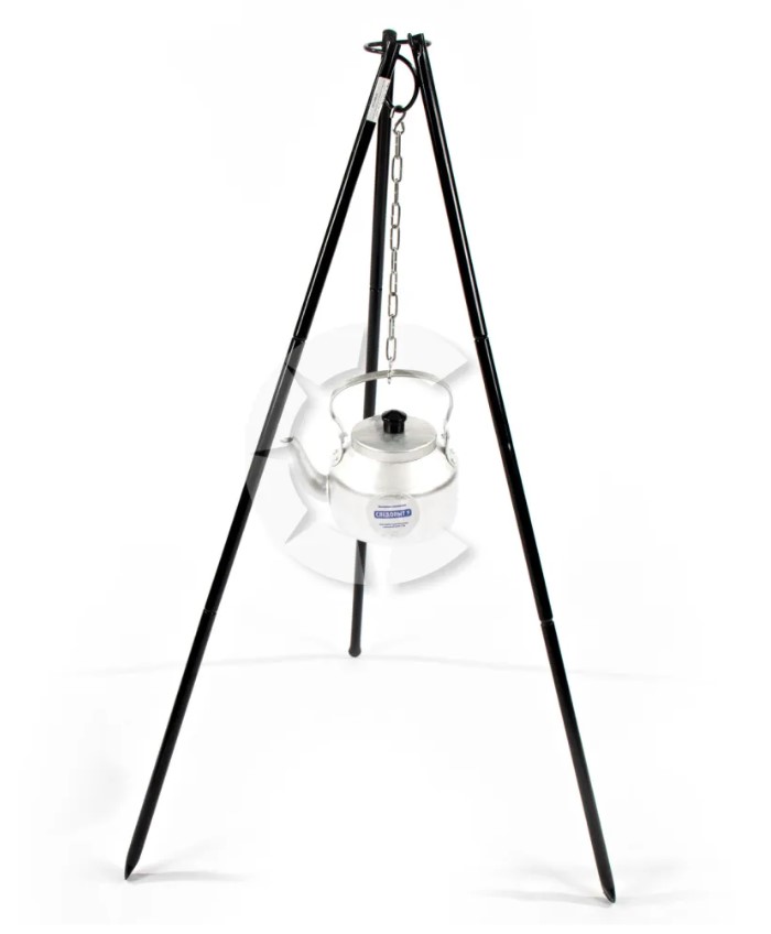 Тренога состоит из трех опор, соединенных в одной точке сверху, к этой же точке присоединен костровой крюк на который подвешивается казан, котелок или чайник. Каждая опора в свою очередь состоит из 3-х секций, благодаря чему компактно убирается в чехол после использования.