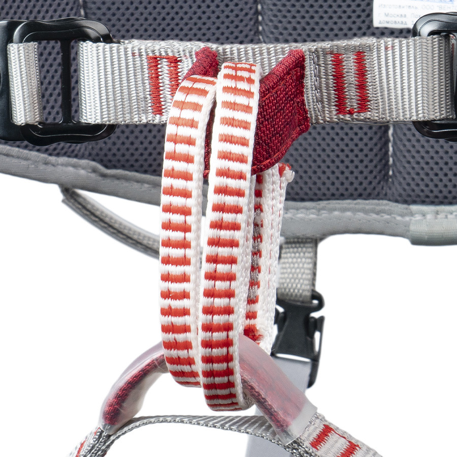 • Две страховочные петли из Dyneema позволяют одновременно применять большое количество снаряжения (усы, оттяжки, снаряжение для ИТО, страховочную веревку и пр.) Кольца складываются одно в другое.