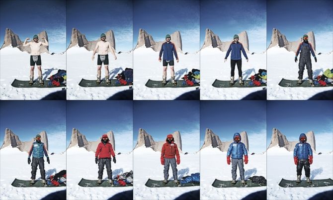 Ну, подобно великому Боргу Осланду (который зимой на лыжах дошёл до Северного Полюса), я в действительности что-то вроде неженки – мне не нравится холод. Также во многих местах, где я совершал восхождения, холод не был желанным, так как короток путь от сильного замерзания к гипотермии и потом к смерти. Быть способным хорошо одеться для холода это одно, но быть способным двигаться, лезть, спать и повторять действия изо дня в день (в Антарктиде мы жили, совершали восхождения, скитурили в одном комплекте одежды) это другое.