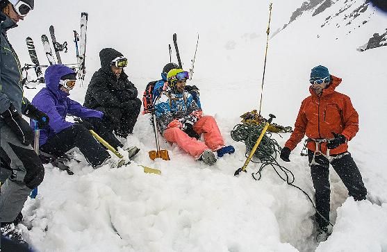 Снег в долине сильно варьирует от экспозиции склонов и высоты. Повсеместно следы от маленьких мокрых лавин поверхностного слоя (размер не более 0,5) с началом из точки от скал. При нас сходили только небольшие лавины с прогретых скальных полок вершин Советский воин и 3800. Лавинное снаряжение пригодится. Также пригодятся кошки, т.к. с утра и до 10.00 склон жесткий. Мощность снега на леднике Мукал – от 20 см на наветренных участках до 190 см.